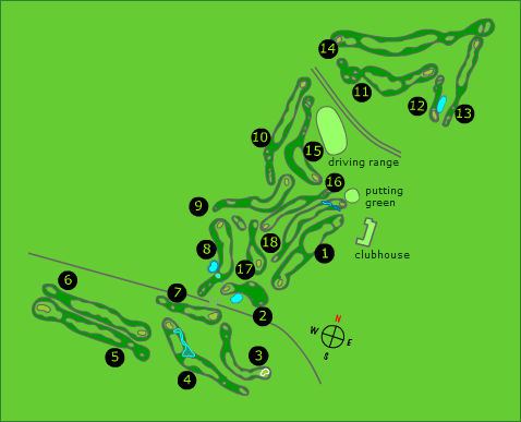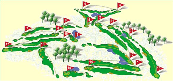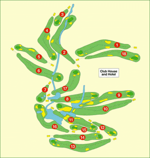 It is a very demanding course with wide, but sloping, fairways. Water comes into play on five of the holes and the